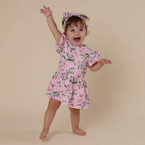 Snuggle Hunny organic dresses have arrived! We are so excited to launch our beautiful dresses in sizes up to 2. These floral prints are perfect for that summer day or birthday party. Soft and stretchy, they are easy-care and very comfy for bub. The sizes up to and including size 1 come with a snap underbody to go over a nappy. Size 2 doesn't have the snap body feature. We have really focused on the details and ensured the dresses up to size 1 are short enough so that a baby can crawl and not trip over the skirt. Size 2, when they're walking, is a bit longer.