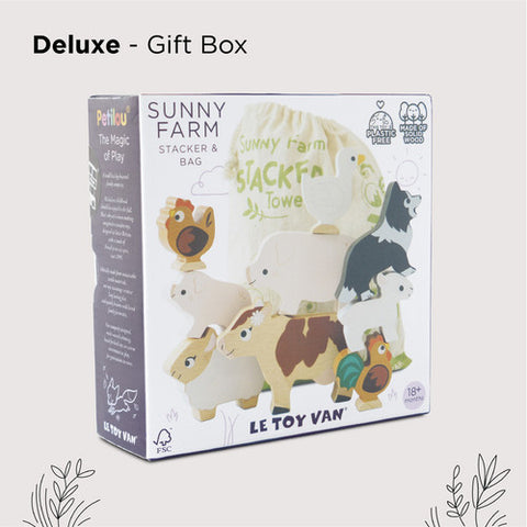 Instructional Video Get ready for endless farmyard fun with this perfect educational gift for young learners. With nine beautifully crafted animal pieces made from durable and eco-friendly FSC®-certified wood, children will have a blast learning and playing with their farmyard favourites; pig, piglet, cow, hen, chicken, sheep, lamb, dog and duck. Each stackable character features a lovely painted design made with water-based, child-safe colours, ensuring that children can play safely and responsibly. And when playtime is over, simply store the pieces in the handy cotton drawstring bag to keep them safe and organised. This animal stacking set is perfect for developing open-ended play and fostering important skills like hand-eye coordination and problem-solving. Bring the magic of the farm to your children's playtime with this animal stacking toy - a timeless treasure that will bring joy for years to come! Suitable for ages: 18 months+ Product is constructed from: FSC®-certified wood (wood from sustainably managed forests) and decorated with child-safe water-based paints.